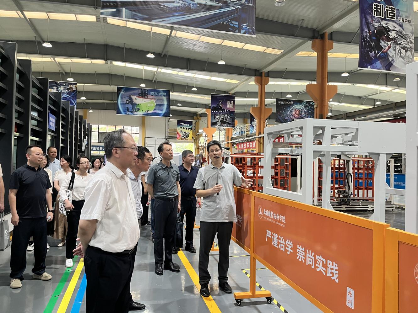 扬州市职业大学一行还参观了我校智能制造中心、路演大厅和公共虚拟仿真实训中心。在智能制造中心,来访人员详细了解先进制造设备的运行情况以及校企合作开展实践教学的模式;路演大厅里,我校学生创新创业项目路演展示赢得了来访人员的一致好评;国家级公共虚拟仿真实训中心逼真的实训场景和沉浸式的教学体验,让来访人员对我校实践教学改革成果有了直观认识。参观过程中,双方就实训基地建设、实践教学体系构建等问题进行了深入交流探讨。