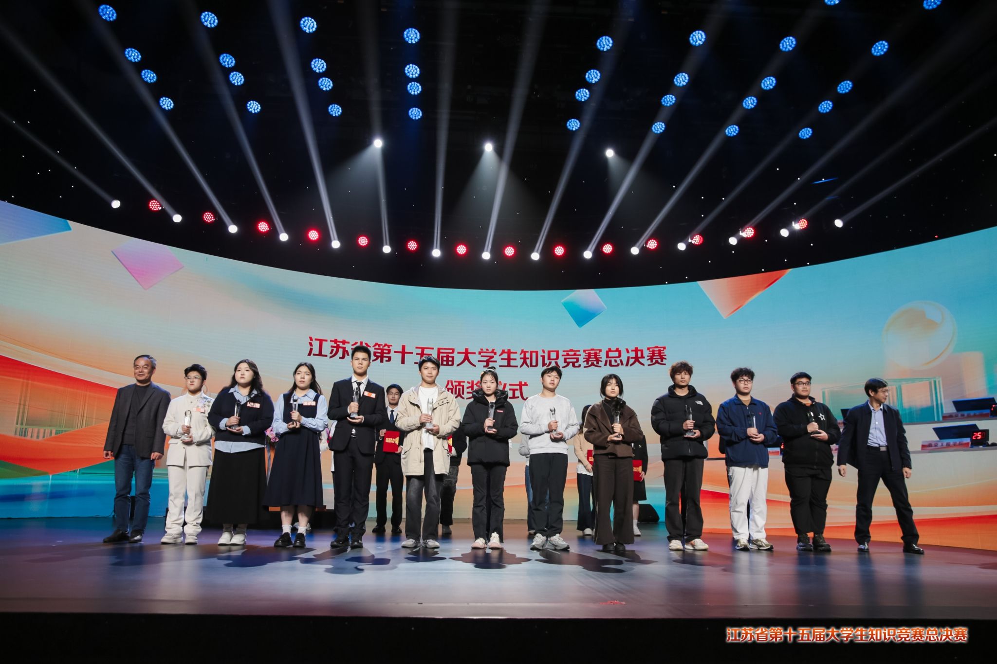 11月15日下午,江苏省第十五届大学生知识竞赛总决赛暨颁奖活动在江苏广电教育频道五楼演播厅举行。本次大赛我校共有305位同学获奖,其中一等奖1名、二等奖1名、三等奖60名、优秀奖243名,学校荣获优秀学校奖。教务处老师陪同一等奖获奖学生代表沈文萱到现场领奖。