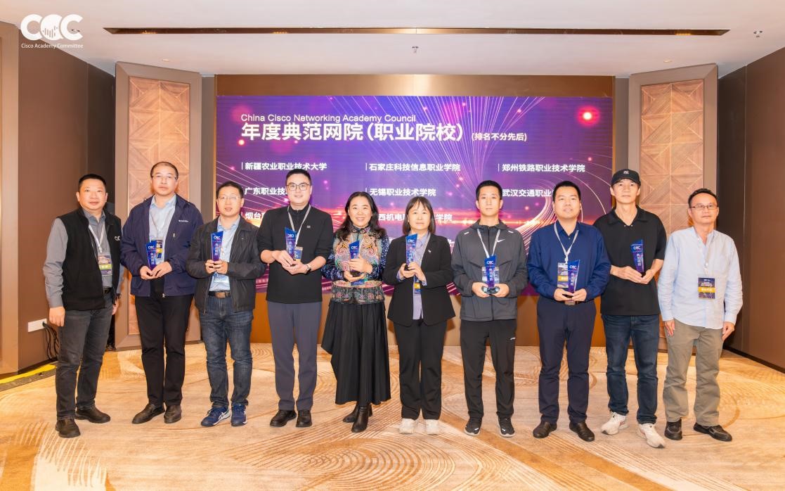 11月14日至16日,2025年度思科网院教师论坛暨第十九届理事大会在南宁召开。本次论坛以“匠心育才·聚启生态·智赢未来”为主题,汇聚思科大中华区资深副总裁兼首席技术官侯胜利、公共事业部全体成员、中国思科理事会成员,以及来自全国本科与职业院校的近百名专家学者与网络专业骨干教师。我校凭借在校企合作与人才培养方面的突出表现,荣获“年度典范网院(职业院校)”称号,教务处吴伟老师、物联网工程学院肖颖老师分别获评“年度卓越贡献奖”。