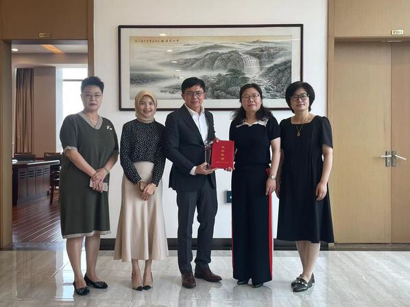 吴慧媛代表无锡市人民对外友好协会为EDDY颁发2022年“无锡市人民友好使者”称号。EDDY表示,非常珍惜与我校的深厚情谊,多次来华的经历让他对无锡这个城市非常有感情,疫情后第一站就来我校访问交流,希望更多的中国、印尼师生能通过国际教育合作,加强文化交流与文明互鉴。