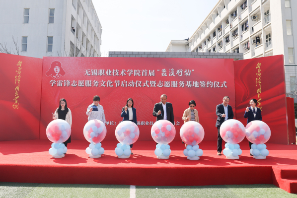 为深入学习党的二十大精神,贯彻习近平总书记关于开展学雷锋活动重要指示精神,3月10日,校团委在学生事务中心前足球场组织开展了学校首届“蠡溪行动”学雷锋志愿服务文化节启动仪式暨志愿服务基地签约仪式。校党委副书记杨雪琴,党委宣传部、学生处、关工委、团委相关负责人,梁溪区北大街街道党工委、团工委相关领导,及来自各分院近200名师生代表参加了本次活动。