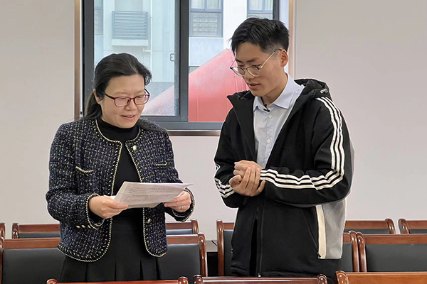 吴慧媛曾多次担任各类大赛评委,具有丰富的评审经验,在翻阅郭祥龙同学的职业生涯规划书和观看该同学的现场演示后,她从选手站位、个人仪态、现场作品展示等方面出发,提出了指导意见。同时,吴慧媛勉励备赛师生要稳定发挥,在更高平台上展示无锡职院学子的职业蓝图。