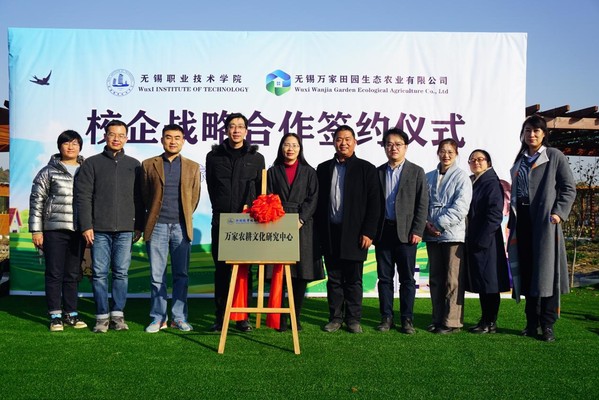 12月15日,我校在万家田园军嶂田园社区与无锡万家田园生态农业有限公司举行校企战略合作签约仪式,成立万家农耕文化研究中心,并设立万家乡村振兴奖学金。滨湖区农业农村局党委委员、副局长谈俊、滨湖区雪浪街道经发局副局长王凯,我校党委副书记杨雪琴、外语与旅游学院院长冯臻及旅游系相关教师,万家田园党支部书记、董事长罗玉军先生等企业相关负责人出席仪式。