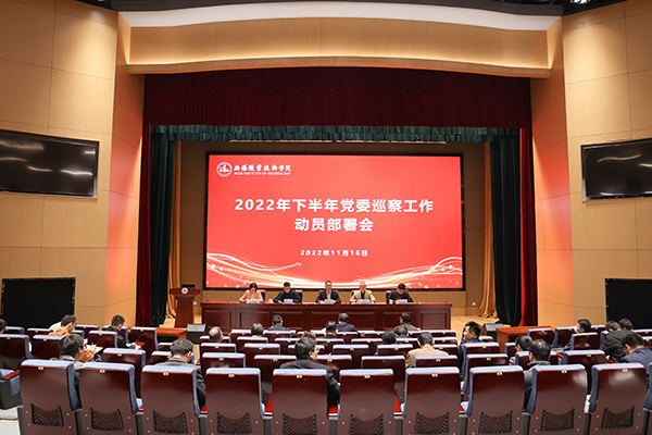 11月16日上午,学校在综合楼一楼报告厅召开2022年下半年党委巡察工作动员部署会。校领导、党委委员、本轮党委巡察工作组全体成员、被巡察单位党组织负责人和所属部门相关负责人、二级党组织纪检委员参加会议。会议由校纪委书记李衔主持。