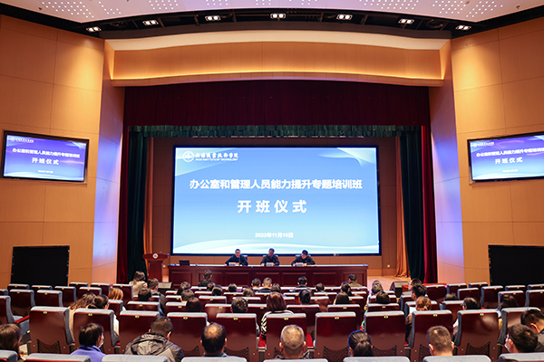 11月18日下午,我校办公室及行政管理人员业务能力提升专题培训班开班仪式在综合楼一楼报告厅召开。校党委书记龚方红出席并作动员讲话,机关党工委书记徐晴主持开班仪式。党办、校办全体成员,机关后勤等部门科级干部、行政管理人员及二级学院办公室主任50余人参加了会议。