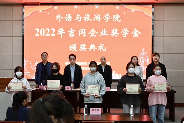 11月1日下午,2022年“吉冈”企业奖学金颁奖典礼在我校国际交流中心二楼报告厅隆重举行。无锡吉冈精密科技股份有限公司董事长周延、人事行政负责人丁称称,我校党委副书记杨雪琴、学生处、外语与旅游学院相关负责人和全体在校获奖学生出席颁奖典礼。外语与旅游学院党总支书记郭再泉书记主持活动。