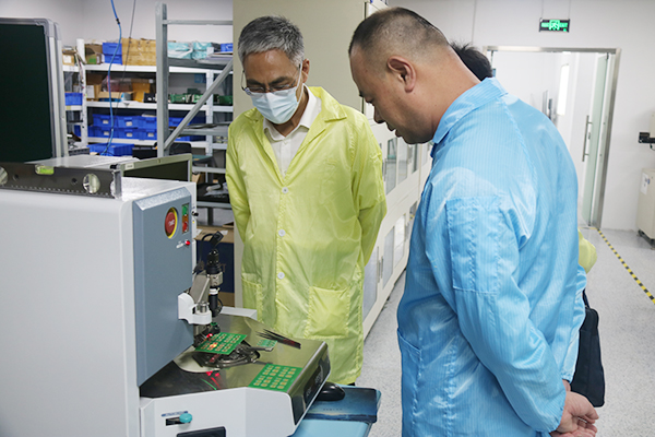 周桂瑾一行实地察看了无锡先锋高级中学门岗、宿舍、食堂、教学楼、图书馆等场所;在无锡市宇博科技有限公司现场调研了生产经营、疫情防控等工作。