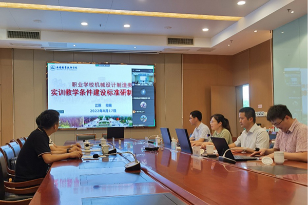 8月17日上午,第七批职业学校实训教学条件建设标准机械设计制造类标准研制启动会在我校召开。本次会议采用线上线下相结合的方式举行,中国职业技术教育学会装备委员会秘书长张利华、校企合作部主任金毅,机械教育发展中心处长黄小东,我校副校长吴慧媛、机械技术学院党总支书记王骏,以及研制工作领导小组成员、专家和行业企业代表等80余人参加会议,会议由王骏主持。