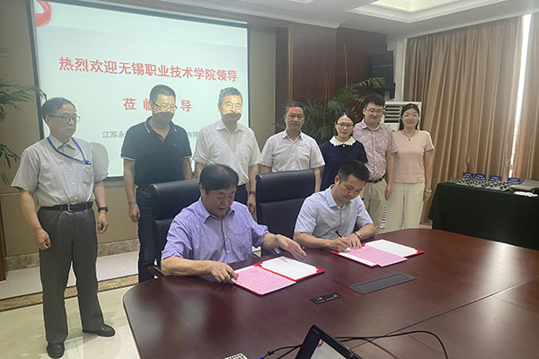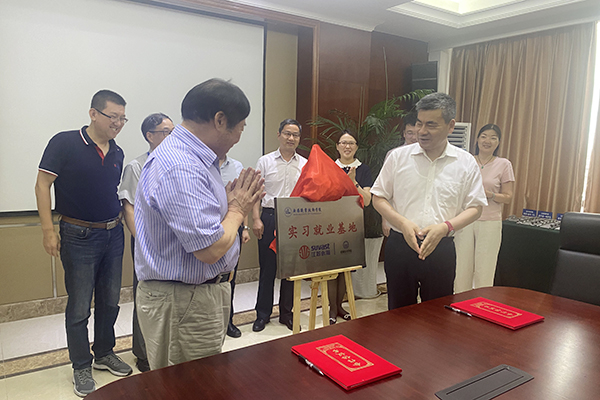 校企双方围绕高素质技术技能人才培养、技术研发和员工培训等展开了充分的交流与沟通,表达了强化合作的意愿,并在人才交流等方面达成初步意向。王骏代表机械技术学院和江苏永瀚签订了共建校外就业实习基地协议,朱爱胜和曹荣为就业实习基地揭牌。