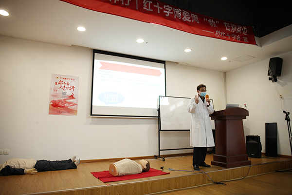 本次活动采用随机调查、理论培训、现场演示、实操练习、活动巩固相结合的方式。活动前,通过学校红十字会志愿者们在校园内随机调查同学们对于常见应急救护知识的了解情况,并将调查结果反馈至此次培训的主讲医生。主讲孙东明医生结合我校学生实际,讲解了常见急症、意外伤害的应急救护基本理论,具体介绍了心肺复苏的程序与操作技术及止血包扎和处置办法等。为了方便学生更直观地感受和掌握急救要领,红十字志愿者借助教学模拟人现场演示了心肺复苏术的整个流程,同学们听得认真,观察仔细,还在志愿者的指导下积极参与现场的模拟演练。