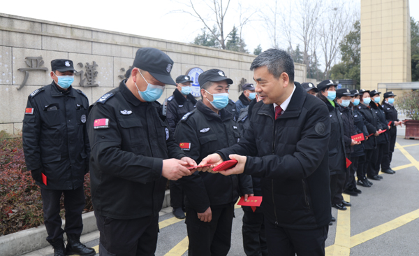 校领导一行在太湖校区南门岗、智慧技防指挥中心、杜鹃园学生宿舍等处,向春节期间舍弃了与家人的团聚时光,为学校安全工作保驾护航、为留校学生做好服务保障工作的教职员工表达了深切的问候。校党委朱爱胜书记指出,学校的高质量发展和高水平运行离不开每一位无锡职院人的辛勤付出,春节期间仍旧坚守工作岗位的教职员工更是展现了难能可贵的奉献精神和敬业品质。