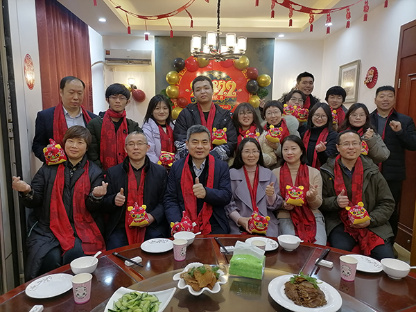 1月29日,我校在教工餐厅举办“情系留校生 一起过大年”迎新春团拜活动,校党委书记朱爱胜、副校长杨雪琴、副校长强伟纲,校学生处、团委、物联网学院、财经学院、国际教育学院、后勤处相关负责人,以及6名因疫情原因无法返乡的学生共同迎接新春。