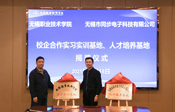 10月18日下午,我校与无锡市同步电子科技有限公司(下称“同步科技”)在综合楼F201会议室签约合作,并为实习实训基地和人才培养基地揭牌。同步科技总经理王永康、我校校长龚方红和科产处、教务处、控制技术学院相关负责人参加活动。