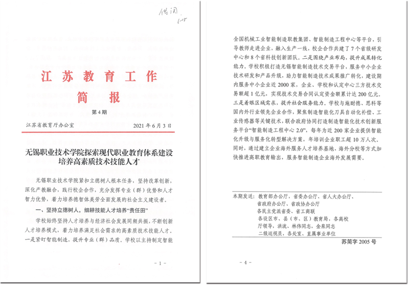 6月3日,省教育厅简报以“乐鱼app登录入口探索现代职业教育体系建设 培养高素质技术技能人才”为题,从“坚持立德树人,细耕技能人才培养‘责任田’”“ 注重内涵建设,牵住教育教学改革 ‘牛鼻子’”“ 强化创新引领,激活赋能产业发展‘一池水’”等三个方面对我校“探索现代职业教育体系建设”工作进行了专题报道。