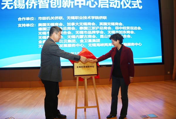 3月26日上午,无锡侨智创新中心启动仪式在我校举行。无锡市侨联主席毛加弘,无锡市人大副秘书长、市级机关侨联主席赵立平及无锡市各机关、团体、协会、学会领导,在锡商会、高职院校侨联负责人和企业界代表参加了揭牌活动。