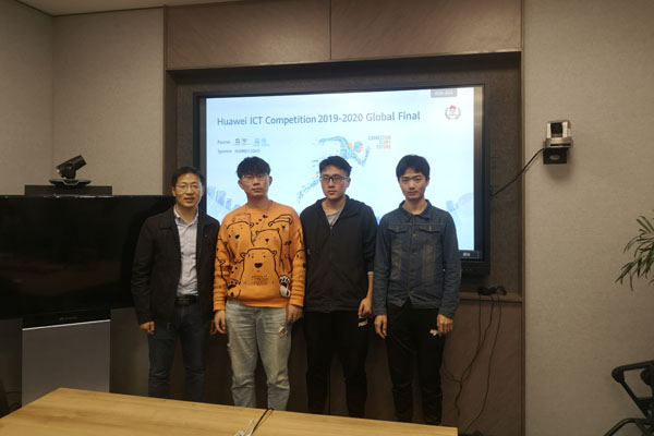 我校已组织参加了5届华为ICT大赛,三次进入全国决赛,一次进入全球总决赛。全球总决赛分为理论题(20%)和实验题(80%),时间为5.5个小时,题目为全英文,所有本、专科参赛队伍同场竞技,在全球各地华为办事处同时在线比赛。最终,我校三位同学同心协力勇夺全球网络赛道二等奖。