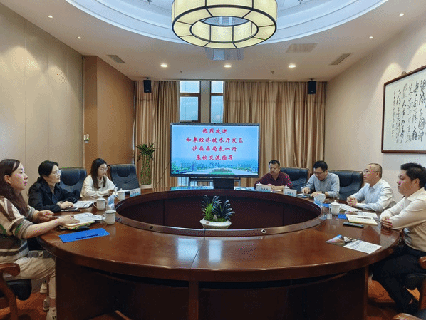 沙晶晶介绍了如皋经济技术开发区经济社会发展取得的成绩以及发展规划等方面的情况。雷锐莉介绍了企业的发展、生产经营情况及在发展中碰到的技术难题和人才需求状况。