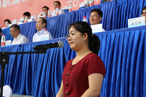 最后,龚方红进行了激励人心的致辞,表达了对新生衷心的祝贺和热烈的欢迎,介绍了学校深厚的文化历史,分享了我校近年来取得的辉煌成绩。龚方红还对新生提出了谆谆教导与殷切期望:一是要有理想,做一个远见卓识的人。希望同学们能将目光放得更长远,努力向前、与时俱进;将视野放得更开阔,涵养大胸怀、大境界、大格局,以成为各领域的大国工匠为志。二是会规划,做一个意志坚定的人。要制定科学合理的职业生涯规划,以高素质技术技能型人才为成长成才方向。希望同学们能早日确定自己的专属计划,学会设定阶梯式目标,小步快走,先实现小目标,再到中目标,积聚力量,最后才是大目标。三是能修心,做一个埋头苦学的人。希望同学们在校期间扎实打牢专业功底,掌握一两项专业技能,练就硬核职业能力,为开辟美好未来奠定坚实基础。四是肯实干,做一个超越自己的人。希望同学们在大学时光里能磨砺出严谨认真、精益求精、追求完美、勇于创新的工匠精神,一步一个脚印去实现自己的小目标、中目标,最终实现自己的大目标,不断超越自己,实现自我。