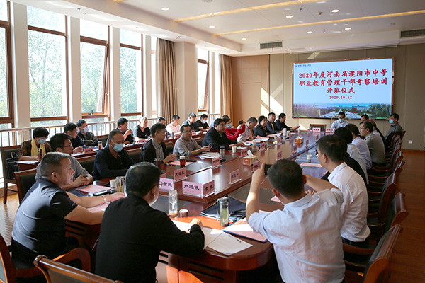 10月12日上午,由我校管理学院承接的2020年度河南省濮阳市中等职业教育管理干部考察培训班在我校综合楼F201会议室举行开班仪式,校长龚方红、管理学院党政负责人、项目运行管理人员以及来自河南省濮阳市的28名职业教育管理干部参加了开班仪式。