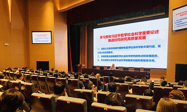 10月14日下午,应学校社会科学处、校社科联邀请,江苏省哲学社会科学界联合会副主席、党组成员徐之顺研究员,来我校做关于“学习习近平哲学社会科学重要论述,推进社科研究高质量发展”的学术报告。副校长杨雪琴教授主持报告会,并对徐之顺研究员来校指导表示热烈欢迎,对省社科联长期以来对我校的关心与支持表示感谢。全校100余位师生聆听了报告。