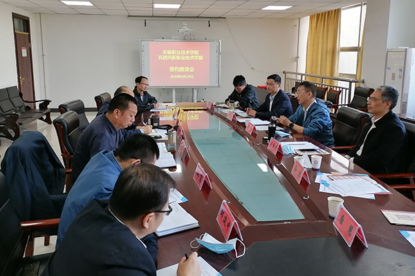 在新疆生产建设兵团兴新职业技术学院,调研组一行与该院院长李泽龙、副院长张展以及相关部门负责人进行了座谈,会上就教师交流、专业建设、信息化建设并重点就教师教学能力大赛共同组建,进行了充分研讨与沟通。双方签订了《东西协作协议书》。