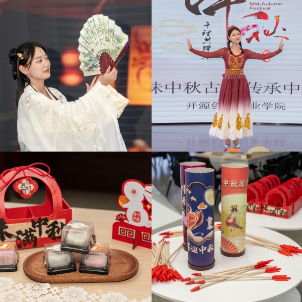之后,师生们亲自动手制作冰皮月饼,体验传统手艺的魅力。活动期间,开源创新创业学院学生联合带来传统文化展示与民族舞蹈表演。猜灯谜、漆团扇、投壶等带有浓厚传统文化气息的互动游戏将现场气氛推向高潮。师生共乐,增进了彼此间的情感交流,共绘团圆画卷。