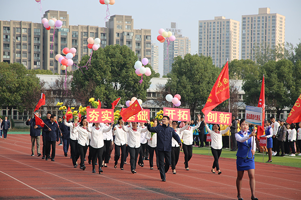 在庄严的升国旗仪式后,杨雪琴副校长致开幕词,指出运动会是对全校师生员工运动水平的一次检阅,是对学校群众性体育工作成果的一次检验,也是对广大师生员工竞争意识、团队精神、顽强意志的一次考验,更是全校师生员工精神风貌的一次全面展示。在过去的一年里,我校体育教学改革、学生体育竞赛、群众性体育活动都取得了明显进步:在江苏省第十九届运动会高校乙组田径比赛中获得3金、1银、1铜,创造了我校参加省运动会田径比赛的历史最好成绩;在江苏省第二十五届高校“校长杯”乒乓球比赛中斩获团体第六名。