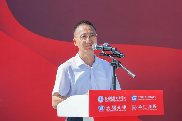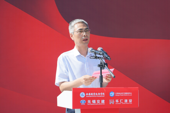 周桂瑾代表学校对出席项目开工仪式的领导及来宾表示欢迎,对各方长期以来对学校建设发展的关心与支持表示感谢,并介绍了学校在物联网学科专业、科学研究、人才培养等方面的发展现状。他表示,为更好服务区域、行业转型发展,培养更多工业物联网领域的技能精英,学校积极响应国务院和省委省政府的决策部署,主动服务《中国制造2025》和“一带一路”倡议,全力开展了此次项目建设。周桂瑾期待,本项目的建成将为学校发展和办学水平的提升提供有力保障,为区域培养更多适应产业发展需求的高素质技术技能人才,为苏锡常都市圈经济发展提供有力的人才支撑,推动区域经济高质量发展。