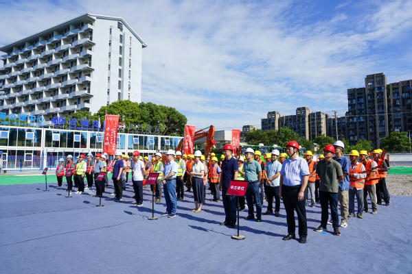 8月2日上午,学校苏锡常都市圈工业物联网实训基地项目开工仪式在太湖校区举行。江苏省住建厅集中建设处副处长蒋伟、校党委书记龚方红、校长周桂瑾、副校长储开峰、江苏省公共工程建设中心副总经理娄永峰、华仁建设集团有限公司董事长袁霞等领导共同见证项目工程开启崭新篇章。