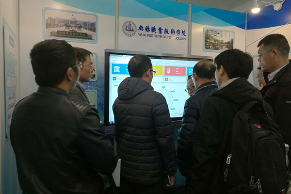 在我校展位前参观的与会代表