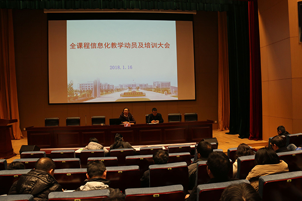 1月16日下午,学校在综合楼辅楼一楼报告厅召开了全课程信息化教学动员及培训大会。顾京副校长及教务处、各分院相关负责人、骨干教师等150余人参加了会议。