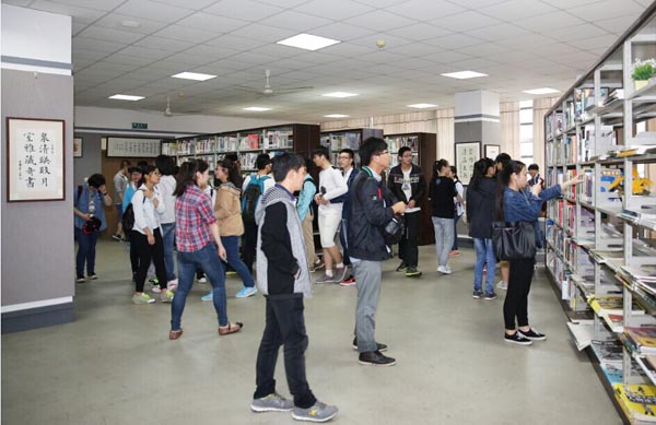 同学们参观图书馆