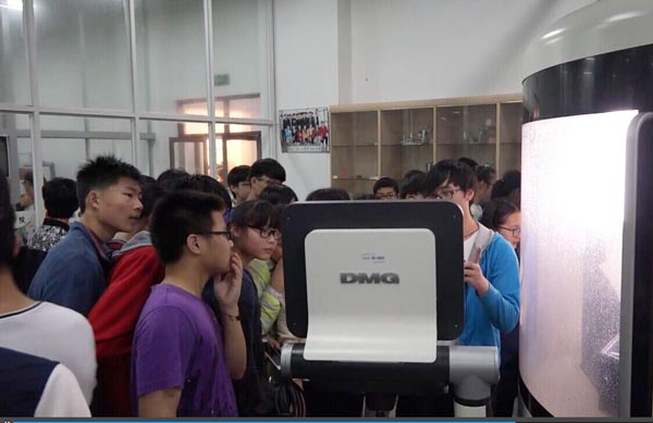 同学们观摩五轴加工中心实训