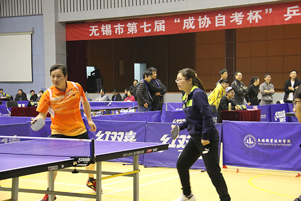 11月26日,无锡市第七届“成协自考杯”乒乓球比赛在我校体育馆拉开帷幕,校领导朱爱胜书记、无锡市成人教育协会张志新会长、无锡市教育考试院邹亚伟院长出席开幕式。来自全市高校、中专校、教育管理等单位144名运动员参加了比赛。