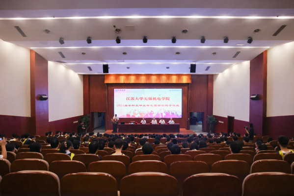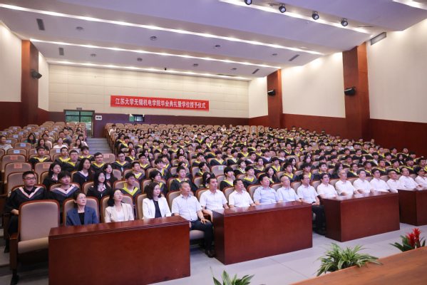 6月21日上午,江苏大学无锡机电学院2024届高职本科生毕业典礼暨学位授予仪式在国际交流中心一楼报告厅隆重举行。校领导周桂瑾、强伟纲、奚茂龙,江苏大学教务处处长尹必峰、学工处处长任泽中及我校相关部门、学院负责人出席毕业典礼。全体2024届高职本科毕业生以及家长代表齐聚一堂,共同见证了2024届毕业生这一人生中的重要时刻。毕业典礼由奚茂龙副校长主持。