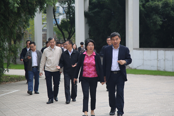 刘霞副市长一行(右二)参观校园环境
