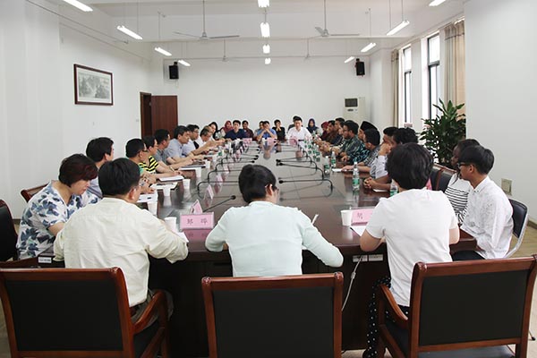 5月25日下午,我校在国际交流中心205会议室召开外国留学生座谈会。校领导朱爱胜、冯渊及党办、国际教育学院、学生处、教务处、团委、后总、相关学院主要负责人及外国留学生代表37人参加了座谈会。