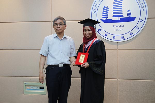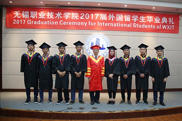 我校是无锡地区首个招收外国留学生的高职院校。8名毕业生全部来自印度尼西亚,他们经过三年在锡学习和生活,不仅掌握相关专业知识和技能,也被中国的文化深深吸引。毕业后,有6名学生已被南京信息工程大学、常州大学免试录取,继续攻读本科;1名学生将赴无锡一家中资企业的雅加达分公司工作;另有1名毕业生决定利用专业所学,回国创业。