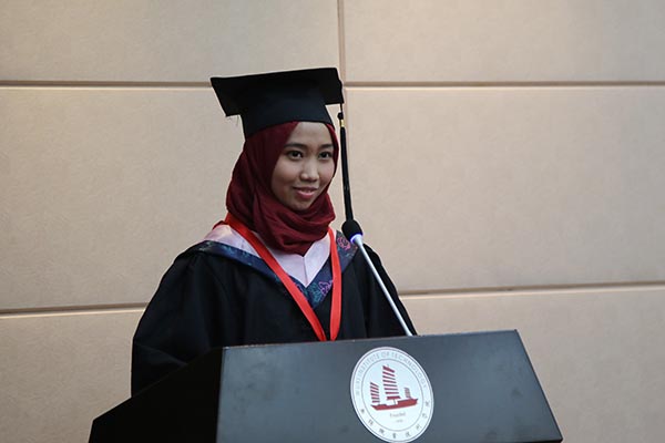 5月26日下午,我校2017届外国留学生毕业典礼在国际交流中心第二报告厅隆重举行,8名外国留学生顺利完成三年学业,在印度尼西亚来宾、学校领导、老师、同学和亲友的见证下翻开人生新的篇章。