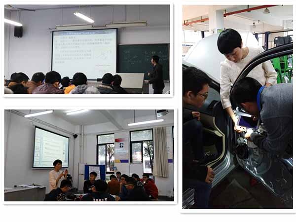 汽车与交通学院陈晟闽老师在工业中心现场为中德合作班的同学详细讲解了如何拆车门内饰板、如何找电路系统中的LIN线、如何拆蓄电池等内容,教学方式体现了现代教育理念,教学模式以学生为主,教学效果良好。同学们在教学用车上分小组认真练习,碰到实际问题后再回教室请教老师,通过师生讨论解决。