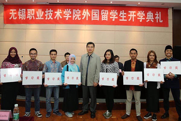 开学典礼由冯渊副校长主持。党委书记朱爱胜在致辞中总结了我校留学生教育及管理方面取得的成绩,并对新同学们在锡期间的学习、生活提出了期望。教师代表杨小波、学生代表马豆豆、于涵分别发言。校领导为2014级留学生颁发专业学习奖、为2015级留学生颁发汉语水平考试证书及汉语学习奖,国际教育学院熊英院长为留学生颁发单项奖。为了使外国留学生更好地在校学习生活,我校特邀无锡市出入境管理处李星諓警官为全体留学生做出入境相关政策法规宣讲及安全教育。