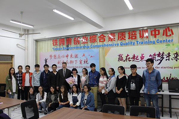 随后,Jim Gresh实地走访了管理学院铁姆肯创业实训中心,并与现场同学亲切交流。我校铁姆肯创业实训中心的运行不仅改善了学生创业的基础环境,也提升了学校的社会综合服务能力,与世界知名企业的合作也积累了校企合作运行的实际经验。管理学院还将努力完成项目既定目标,争取使之成为当地社区公益培训事业的平台。