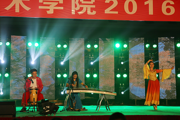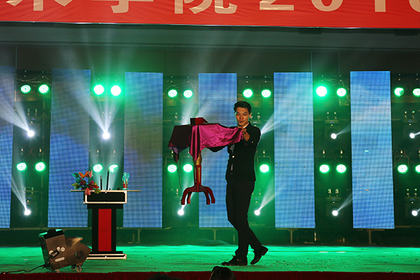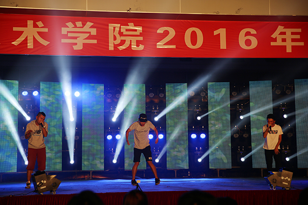 晚会以“梦想在此起飞”为主题,通过歌舞、流行乐串烧、器乐独奏等形式多样的节目,为广大师生奉献了一场视听盛宴。晚会以动感时尚的歌舞《冲向巅峰》开场,印尼留学生们为大家献上极具域外风情的歌舞《Indonesian friends》,2016级的新生们表演的器乐演奏《伊犁河畔》、《帕米尔的春天》,为大家描绘出祖国边疆的美好风光,2013届校友花冬明表演的魔术,神奇之处让同学们目不暇接,不时响起热烈的掌声;艺术团的小品《教子》,将一对“活宝”父子演绎的活灵活现,引得观众们笑声连连;社团联合会的时尚舞蹈串烧,炫酷动感;男生群舞《翻身农奴把歌唱》,展现了藏族同胞翻身做主人的喜悦和对党的感激之情;歌曲《小梦想 大梦想》由学校四位年轻教师演绎,晚会在职院师生对实现职院梦和中国梦的美好期望中落幕。