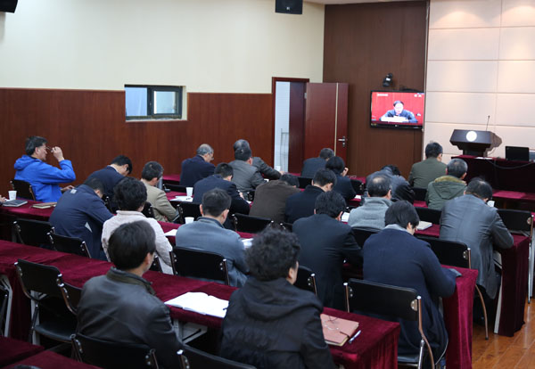 我校领导干部认真收看视频会议