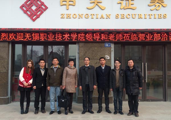 12月15日下午,周桂瑾副校长带领财经学院负责人和相关专业教师走访了校企合作单位中天证券无锡营业部。