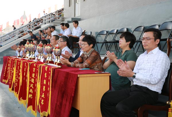 闭幕式由工会主席、体育部直属党支部书记常华主持。学生处强伟纲处长宣布了体育道德风尚奖和广播操比赛名次;总裁判长华宝元宣布了男、女团体总分前六名,与会领导向获奖集体和个人颁发了锦旗和证书。在这次历时两天的运动会上,全校共有1400多名学生运动员参加了34个田径项目的激烈角逐,500余名教职工运动员参加了7个项目的紧张比赛。其中有208人次获得各个田径赛项的前8名,72个团队获得各项接力赛的前8名,物联网技术学院、汽车与交通学院、机械技术学院一队、控制技术学院一队、管理学院和艺术与设计学院获得广播操比赛前6名;有2名运动员打破了校运会纪录,其中中桥校区一队的朱玉杰同学以11.25米的成绩打破男子铅球校运会纪录,中桥校区一队方灿同学以25.58米的成绩打破女子铁饼项目的校运会纪录。汽车与交通学院、机械技术学院二队、外语与旅游学院、财经学院获得了体育道德风尚奖。