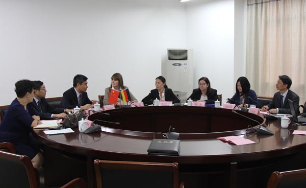 10月10日下午,德国北黑森应用技术大学校长zilling一行5人访问我校,校领导朱爱胜、冯渊及国际教育学院相关人员参加会议。
