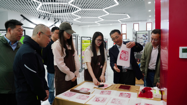 观展领导和嘉宾听取了作品的介绍,了解了作品的创作主题、创作背景、创作构思、文化内涵和市场价值等情况,对参展作品给予了高度肯定。