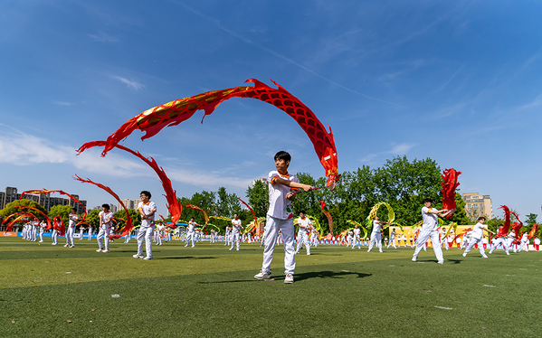 在随后举行的开幕式表演上,我校体育部、团委带来了彩带龙表演《舞动中华 龙腾盛世》、啦啦操表演《青春律动》、歌伴舞《青春飞扬》,展现了当代大学生澎湃昂扬的青春激情。