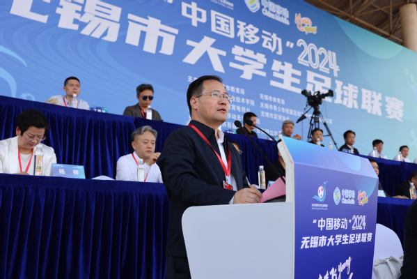 4月24日下午,“中国移动”2024年无锡市大学生足球联赛在我校开幕。市人民政府副市长秦咏薪,市人民政府副秘书长顾文龙,市教育局局长宋新春,市体育局党组书记、副局长杨宇华、我校校长周桂瑾等出席开幕式。各市(县)区、无锡经开区分管领导;市委宣传部、市文广旅游局、共青团无锡市委、市报业集团、市广电集团、各市(县)区教育局、在锡高校领导参加开幕式。